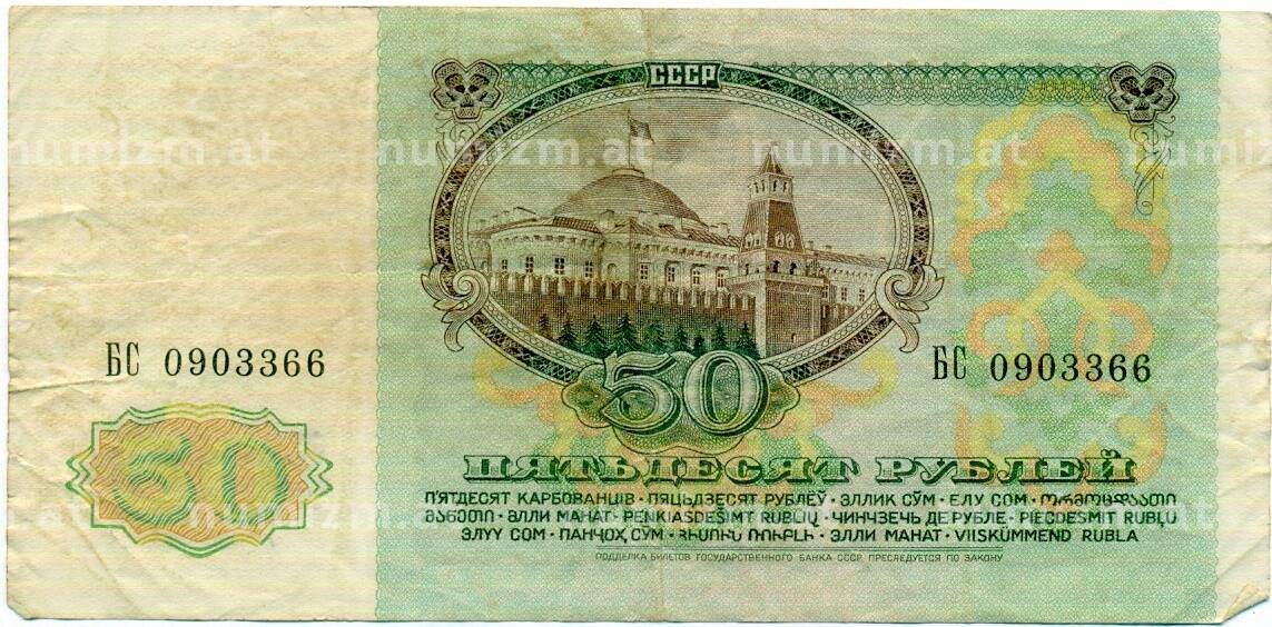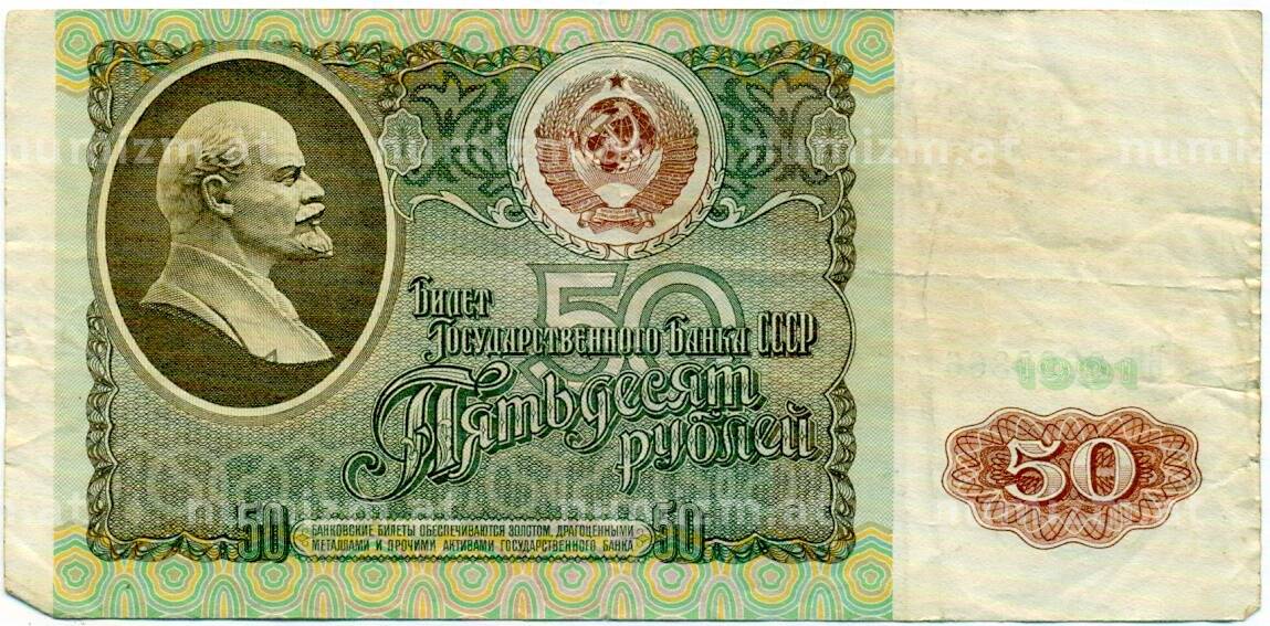 • Банкнота 50 рублей 1991 года (Артикул: T11-32691) — Фото №1 Банкнота 50 рублей 1991 года (Артикул: T11-32691) — Фото №2