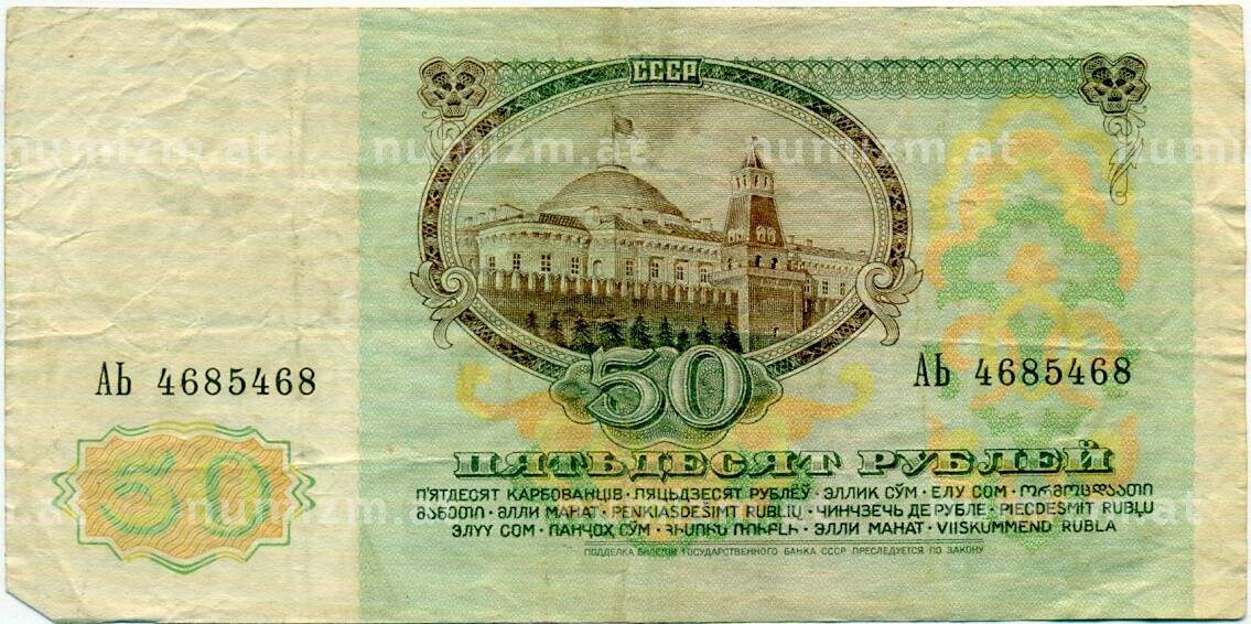 • Банкнота 50 рублей 1991 года (Артикул: T11-32692) — Фото №1 Банкнота 50 рублей 1991 года (Артикул: T11-32692) — Фото №2