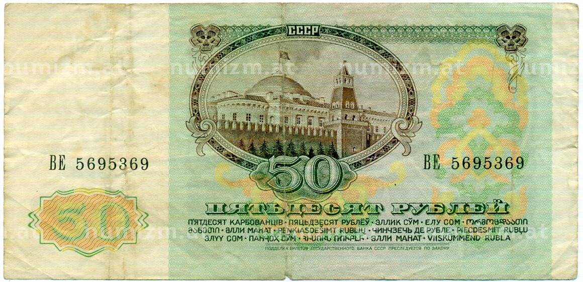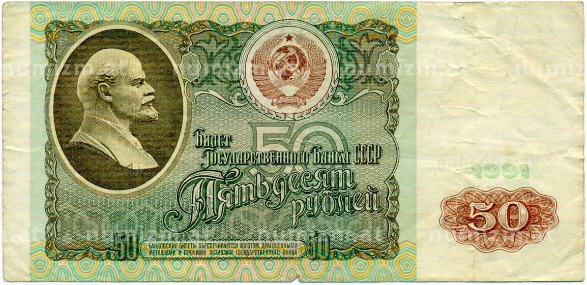 • Банкнота 50 рублей 1991 года (Артикул: T11-32697) — Фото №1 Банкнота 50 рублей 1991 года (Артикул: T11-32697) — Фото №2