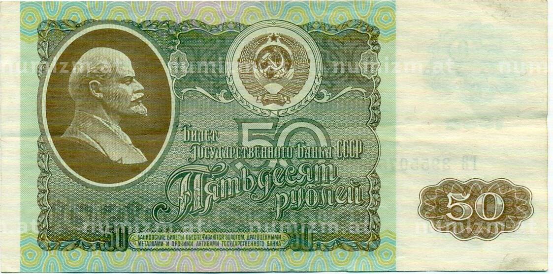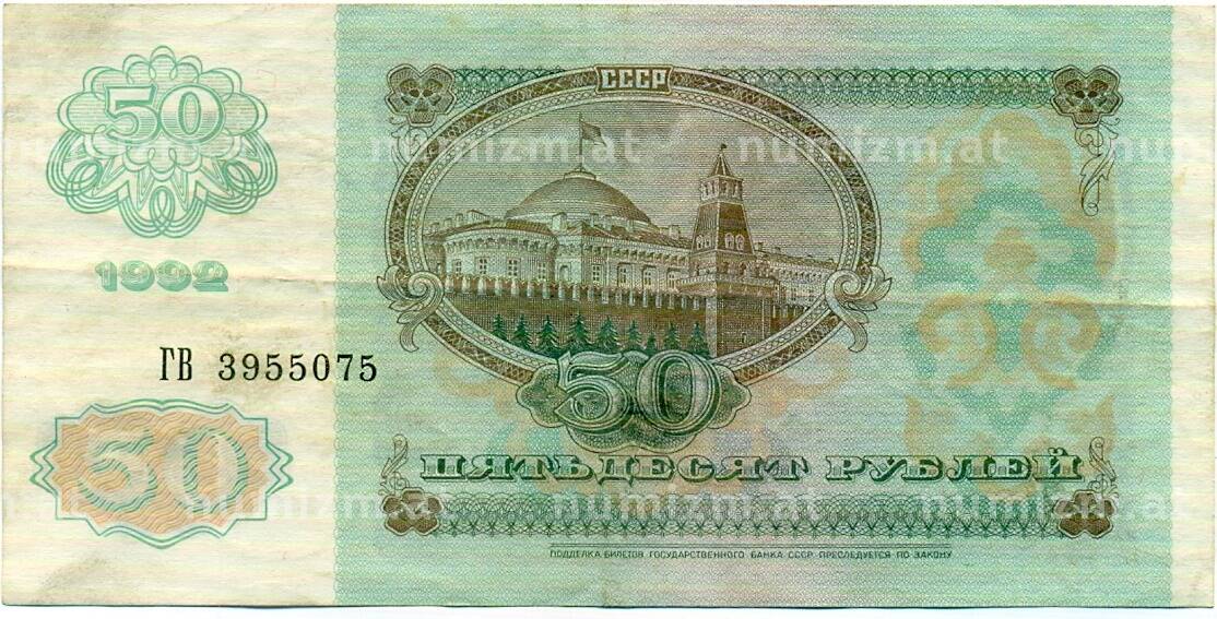 • Банкнота 50 рублей 1992 года (Артикул: T11-32714) — Фото №1 Банкнота 50 рублей 1992 года (Артикул: T11-32714) — Фото №2