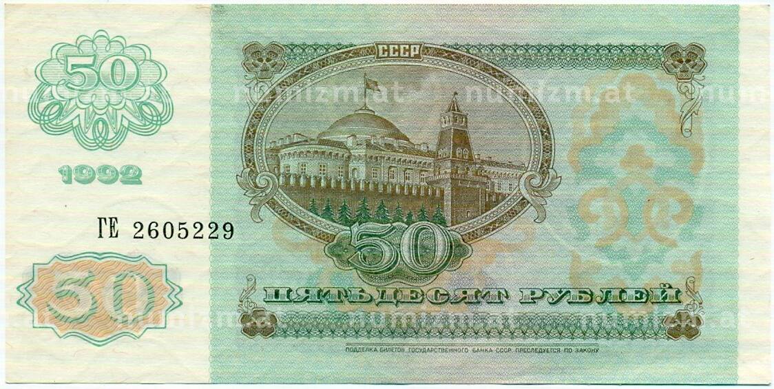 • Банкнота 50 рублей 1992 года (Артикул: T11-32719) — Фото №1 Банкнота 50 рублей 1992 года (Артикул: T11-32719) — Фото №2