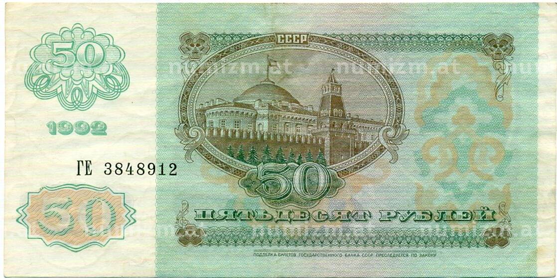 • Банкнота 50 рублей 1992 года (Артикул: T11-32724) — Фото №1 Банкнота 50 рублей 1992 года (Артикул: T11-32724) — Фото №2