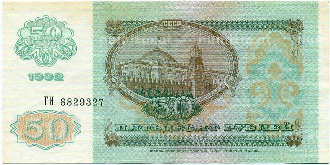 • Банкнота 50 рублей 1992 года (Артикул: T11-32725) — Фото №1 Банкнота 50 рублей 1992 года (Артикул: T11-32725) — Фото №2