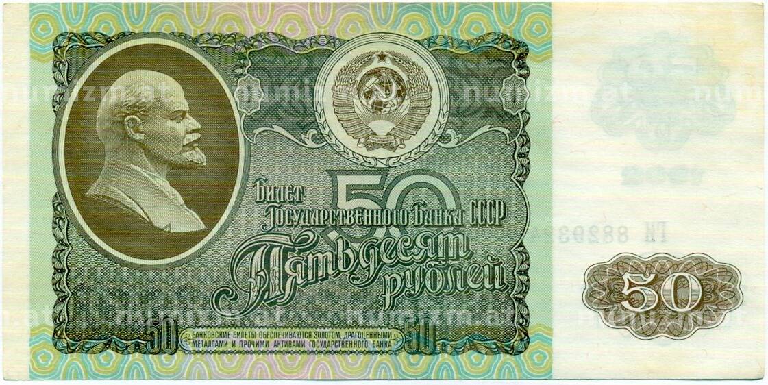 • Банкнота 50 рублей 1992 года (Артикул: T11-32728) — Фото №1 Банкнота 50 рублей 1992 года (Артикул: T11-32728) — Фото №2