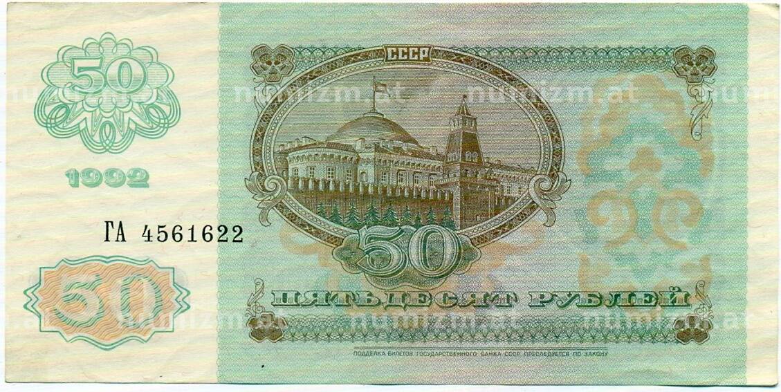 • Банкнота 50 рублей 1992 года (Артикул: T11-32740) — Фото №1 Банкнота 50 рублей 1992 года (Артикул: T11-32740) — Фото №2