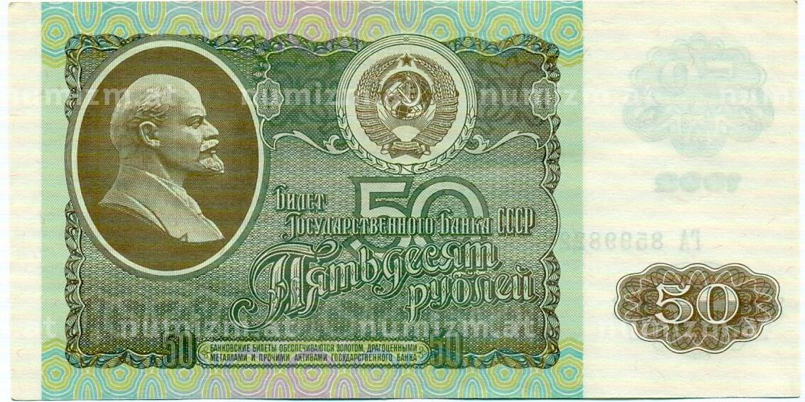 • Банкнота 50 рублей 1992 года (Артикул: T11-32744) — Фото №1 Банкнота 50 рублей 1992 года (Артикул: T11-32744) — Фото №2