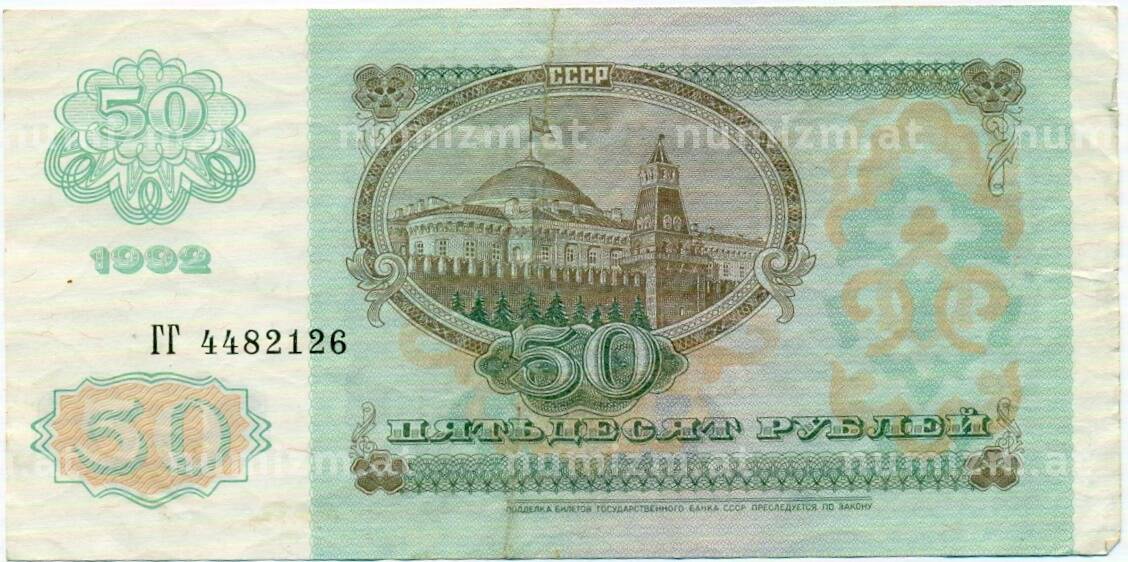 • Банкнота 50 рублей 1992 года (Артикул: T11-32748) — Фото №1 Банкнота 50 рублей 1992 года (Артикул: T11-32748) — Фото №2