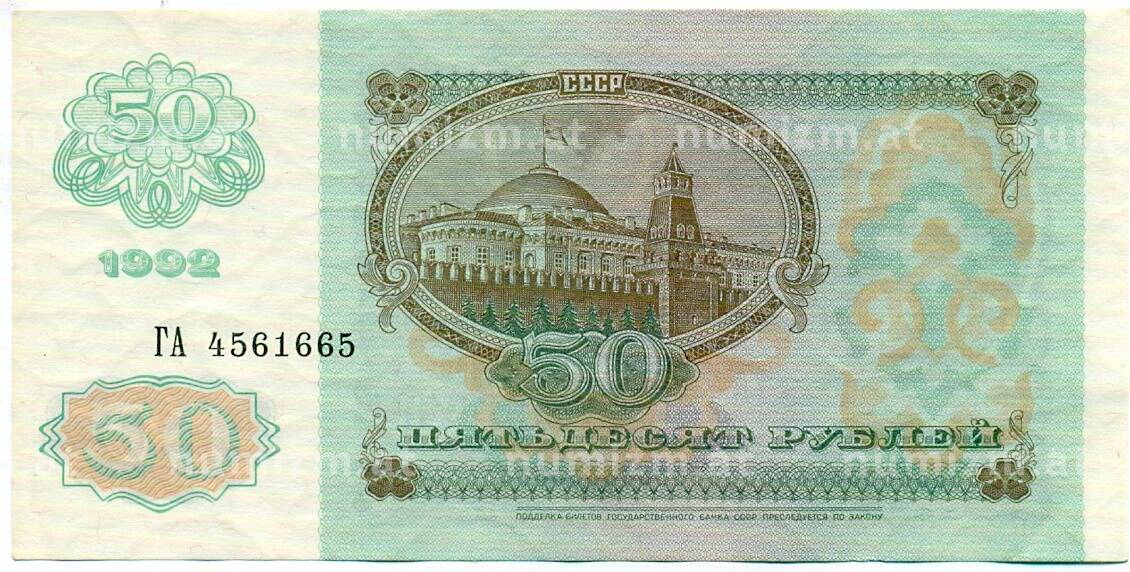 • Банкнота 50 рублей 1992 года (Артикул: T11-32761) — Фото №1 Банкнота 50 рублей 1992 года (Артикул: T11-32761) — Фото №2