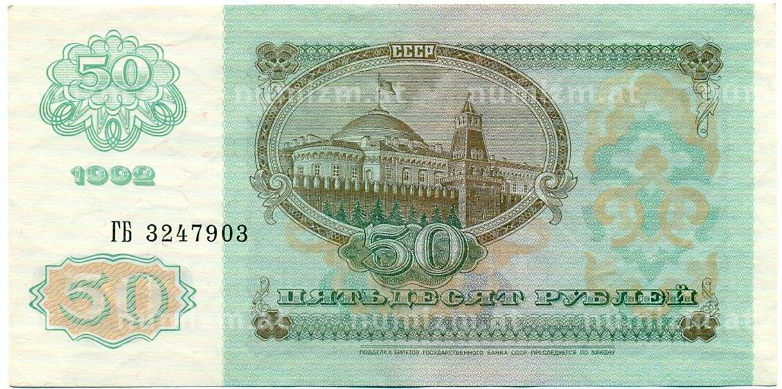 • Банкнота 50 рублей 1992 года (Артикул: T11-32762) — Фото №1 Банкнота 50 рублей 1992 года (Артикул: T11-32762) — Фото №2