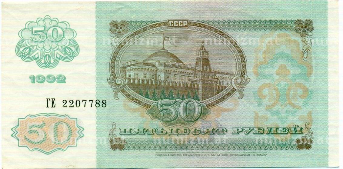 • Банкнота 50 рублей 1992 года (Артикул: T11-32768) — Фото №1 Банкнота 50 рублей 1992 года (Артикул: T11-32768) — Фото №2