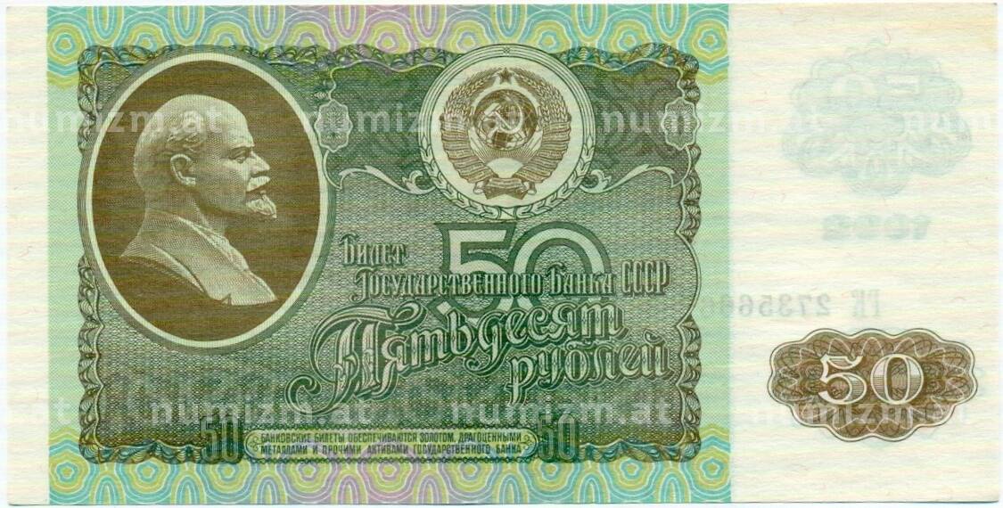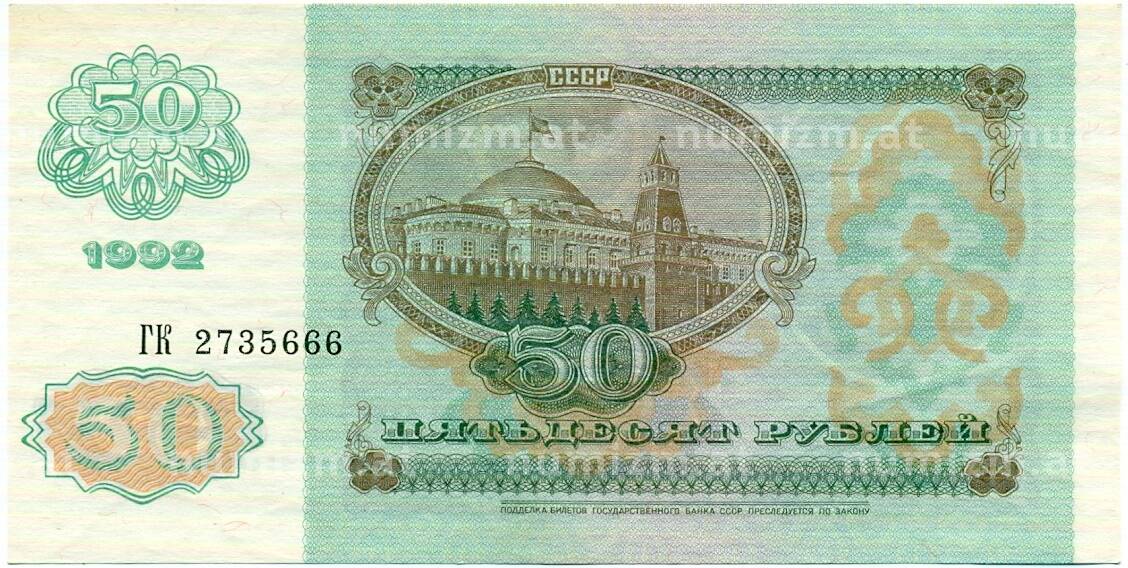 • Банкнота 50 рублей 1992 года (Артикул: T11-32770) — Фото №1 Банкнота 50 рублей 1992 года (Артикул: T11-32770) — Фото №2