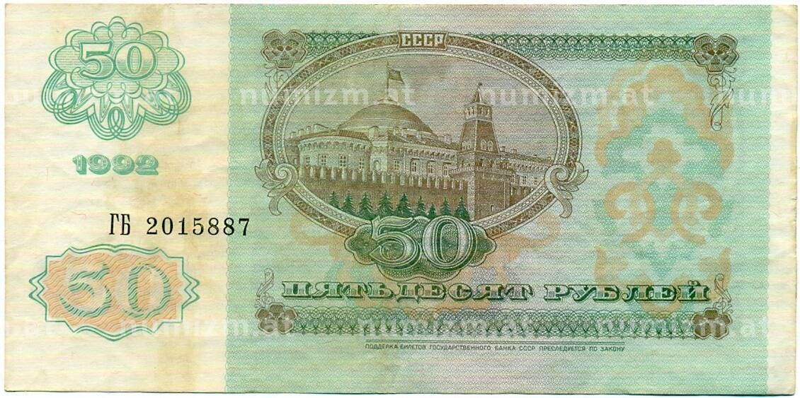 • Банкнота 50 рублей 1992 года (Артикул: T11-32773) — Фото №1 Банкнота 50 рублей 1992 года (Артикул: T11-32773) — Фото №2
