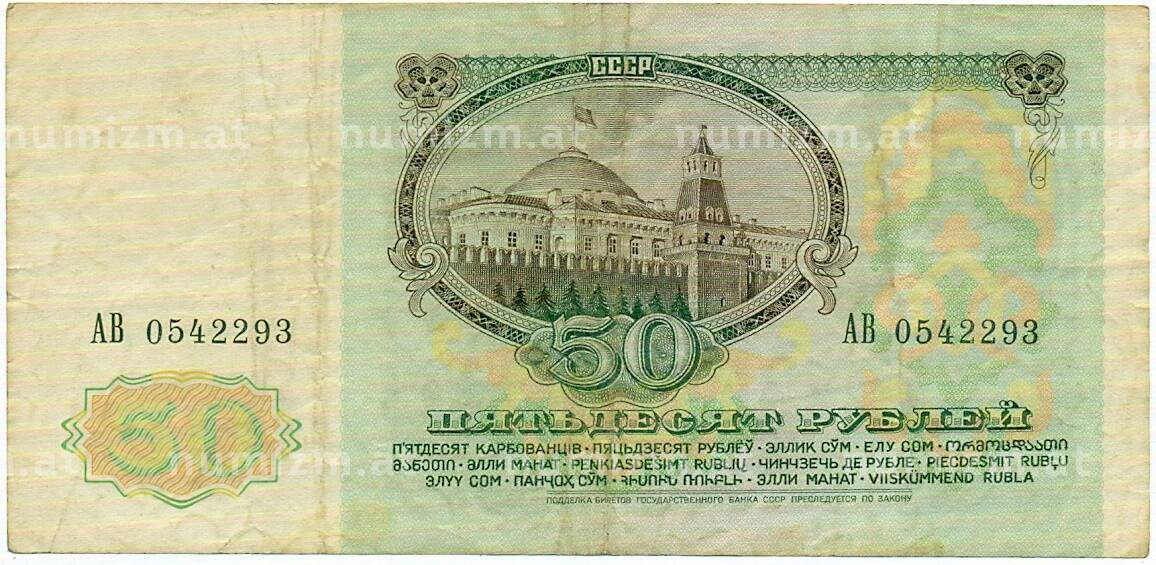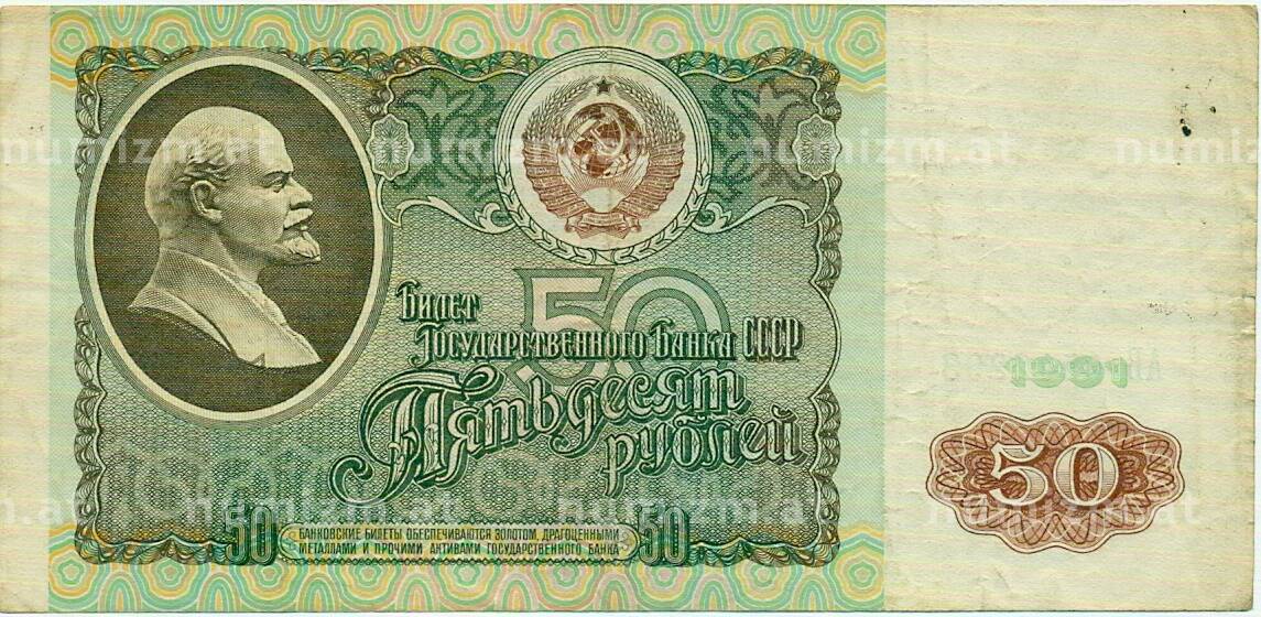 • Банкнота 50 рублей 1991 года (Артикул: T11-32902) — Фото №1 Банкнота 50 рублей 1991 года (Артикул: T11-32902) — Фото №2