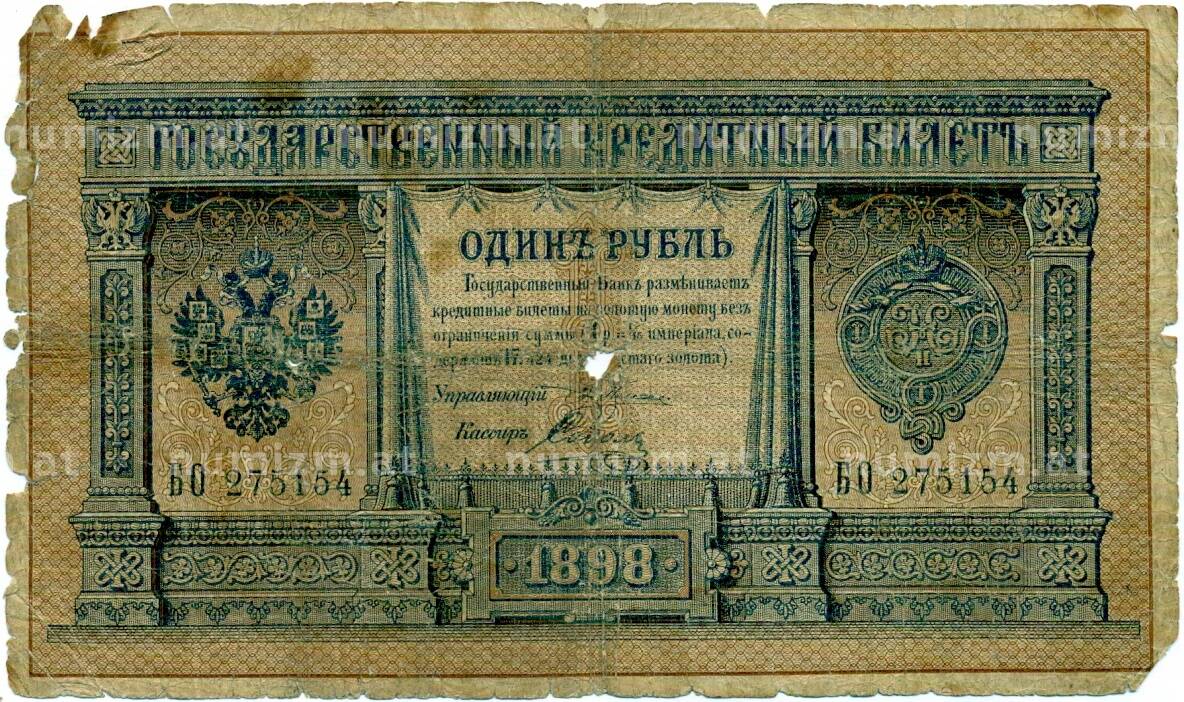 20.01.2025Интернет магазин «Нумизмат» предлагает приобрести 1 рубль 1898 года Плеске / Соболь.