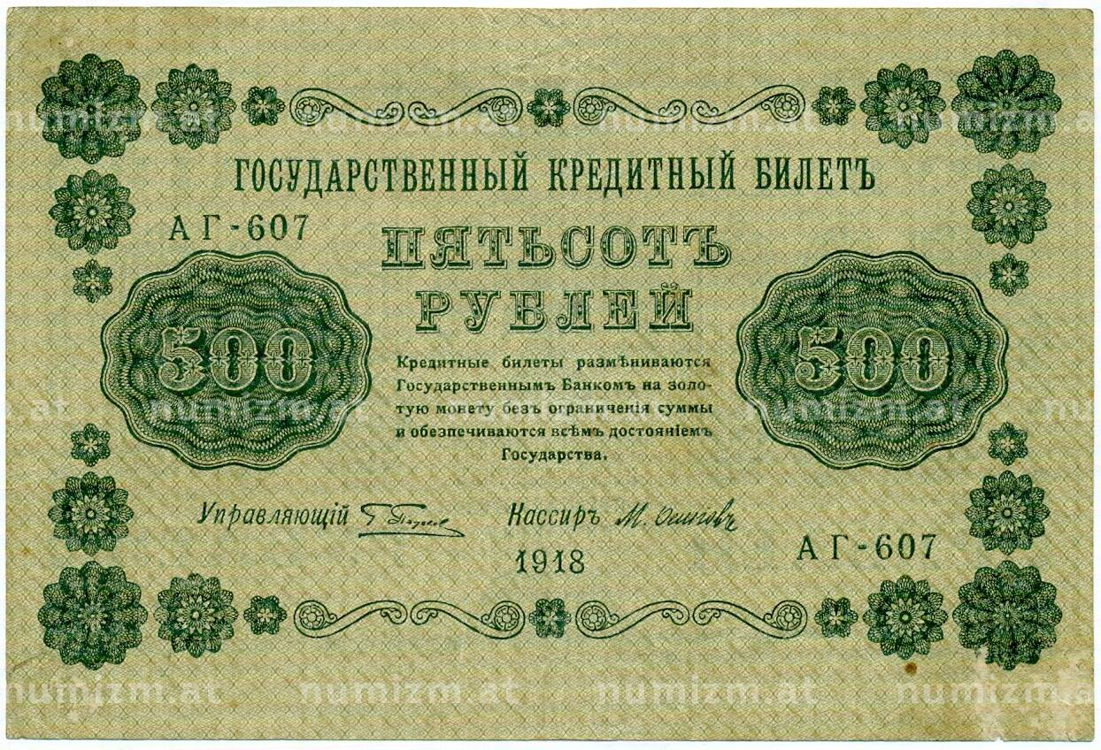 20.01.2025Интернет магазин «Нумизмат» предлагает приобрести 500 рублей 1918 года.
