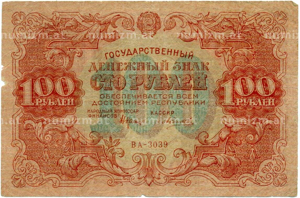 20.01.2025Интернет магазин «Нумизмат» предлагает приобрести 100 рублей 1922 года.