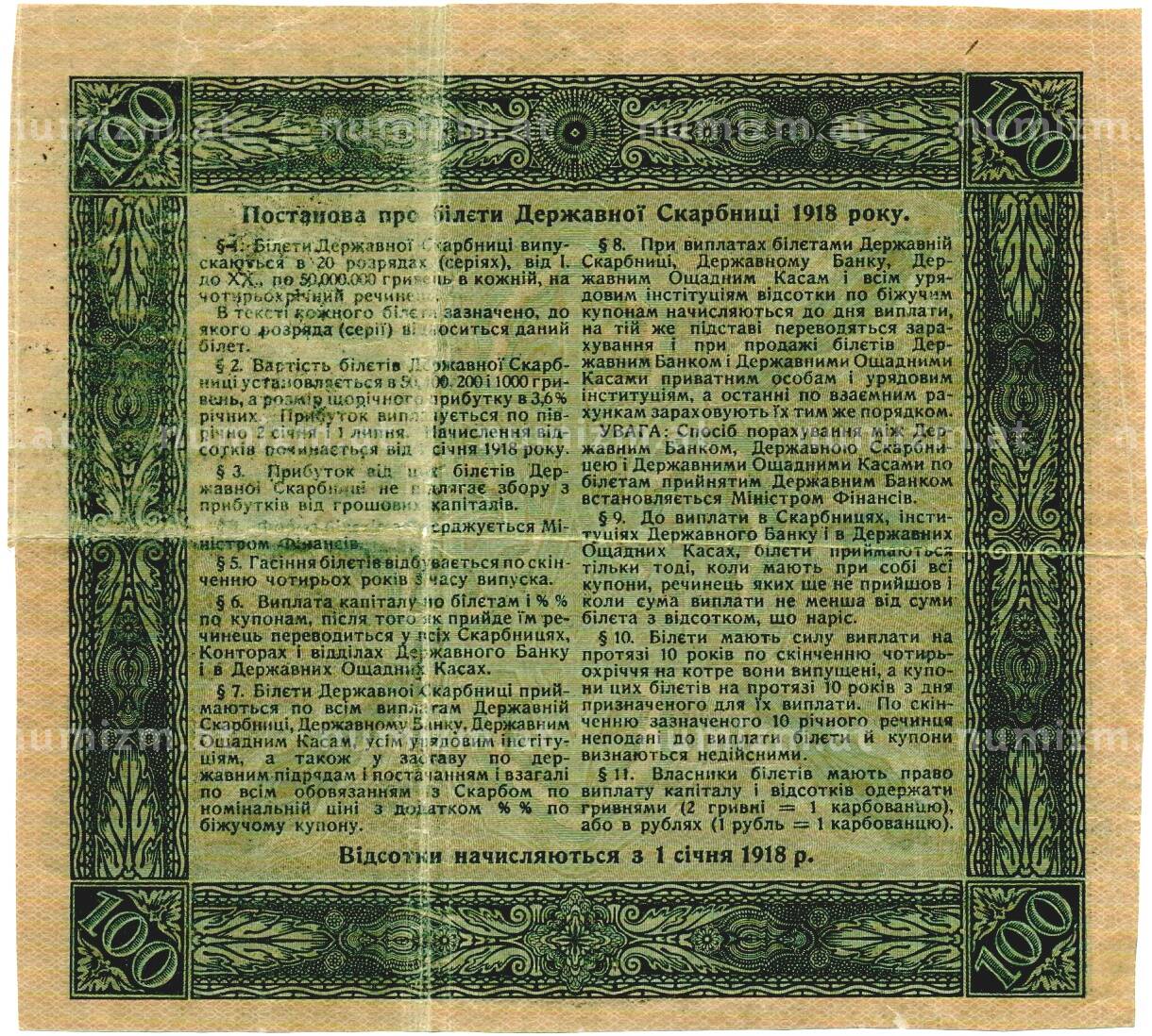 20.01.2025Интернет магазин «Нумизмат» предлагает приобрести Облигация 100 гривен 1918 года Украина «Государственное казначейство».