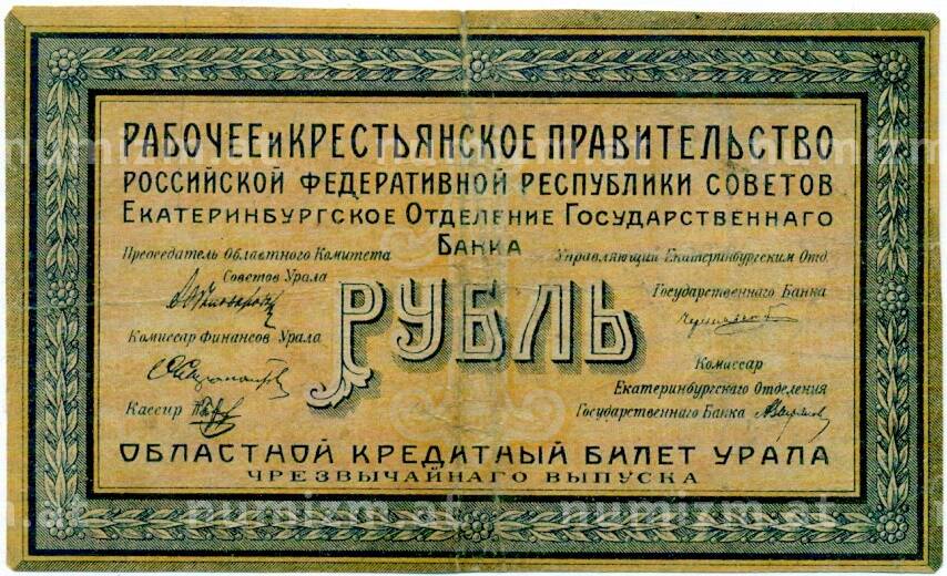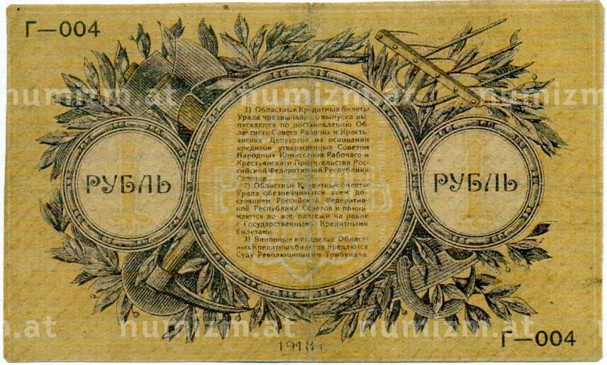 Купить 1 рубль 1918 года Областной кредитный билет Урала по привлекательной цене можно в нашем интернет-магазине — Вам достаточно оформить заказ на сайте. Все монеты, представленные в каталоге, находятся в наличии на нашем складе.