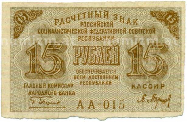 20.01.2025Интернет магазин «Нумизмат» предлагает приобрести 15 рублей 1919 года.