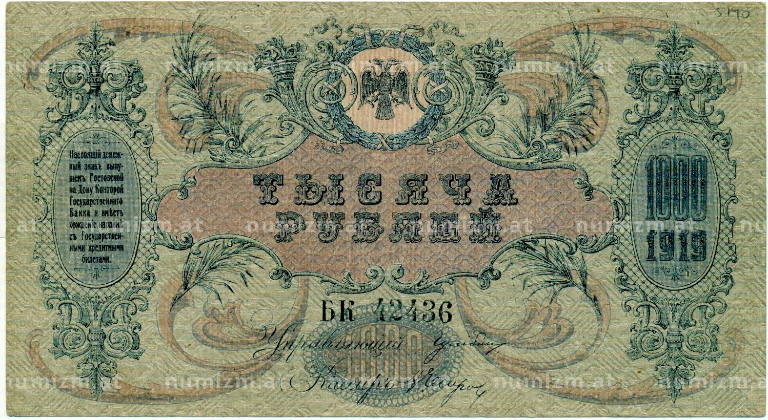 20.01.2025Интернет магазин «Нумизмат» предлагает приобрести 1000 рублей 1919 года Ростов-на-Дону.