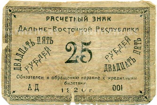 Купить 25 рублей 1920 года Дальневосточная республика по привлекательной цене можно в нашем интернет-магазине — Вам достаточно оформить заказ на сайте. Все монеты, представленные в каталоге, находятся в наличии на нашем складе.