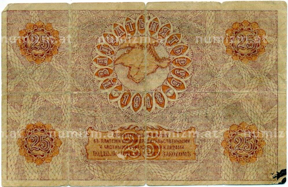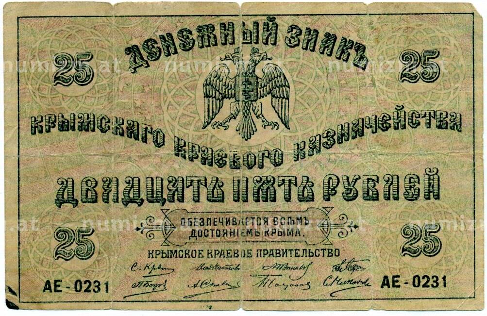 20.01.2025Интернет магазин «Нумизмат» предлагает приобрести 25 рублей 1918 года Крым.