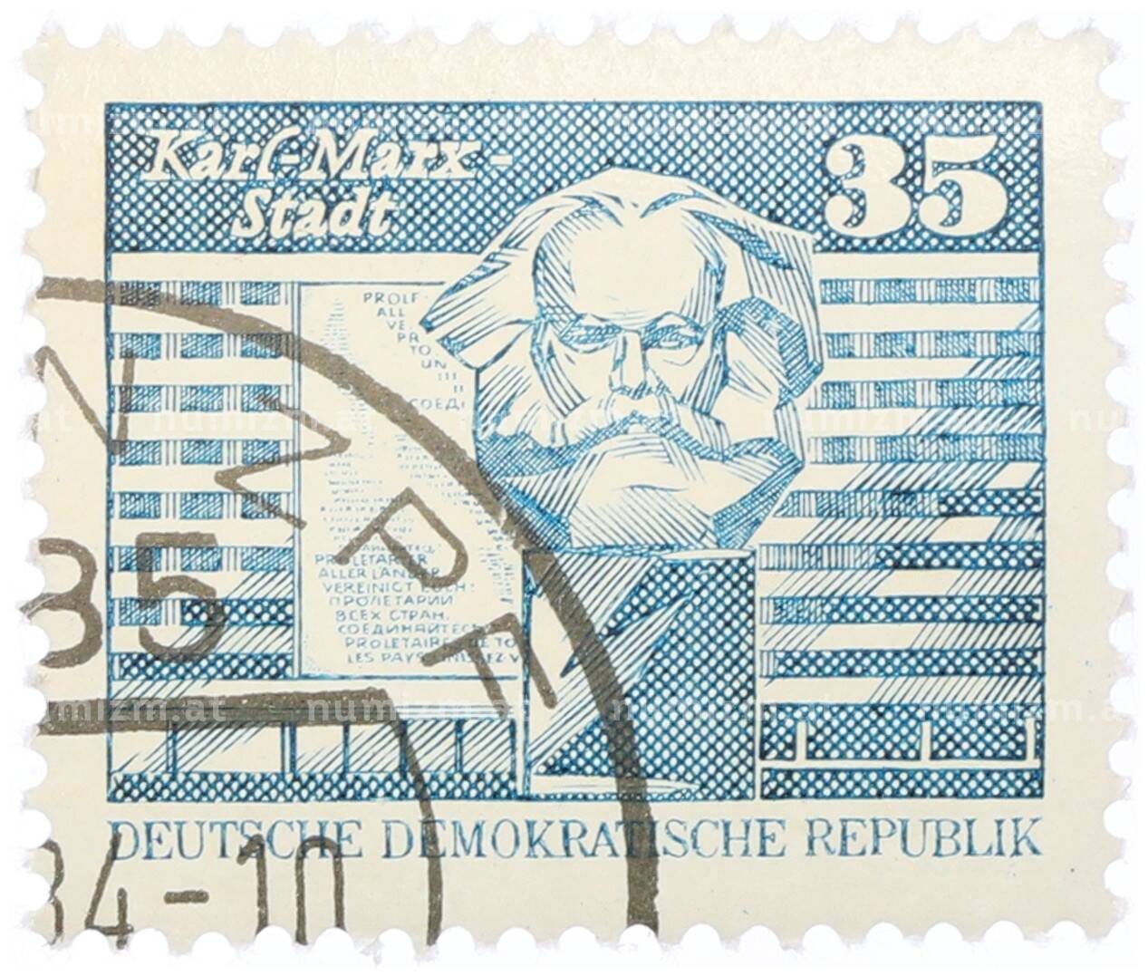 Почтовая марка 35 пфеннигов 1973 года Восточная Германия (ГДР) «Памятник Карлу Марксу» (Артикул: T11-34191): подробные характеристики, качественные фотографии в высоком разрешении, низкая цена.