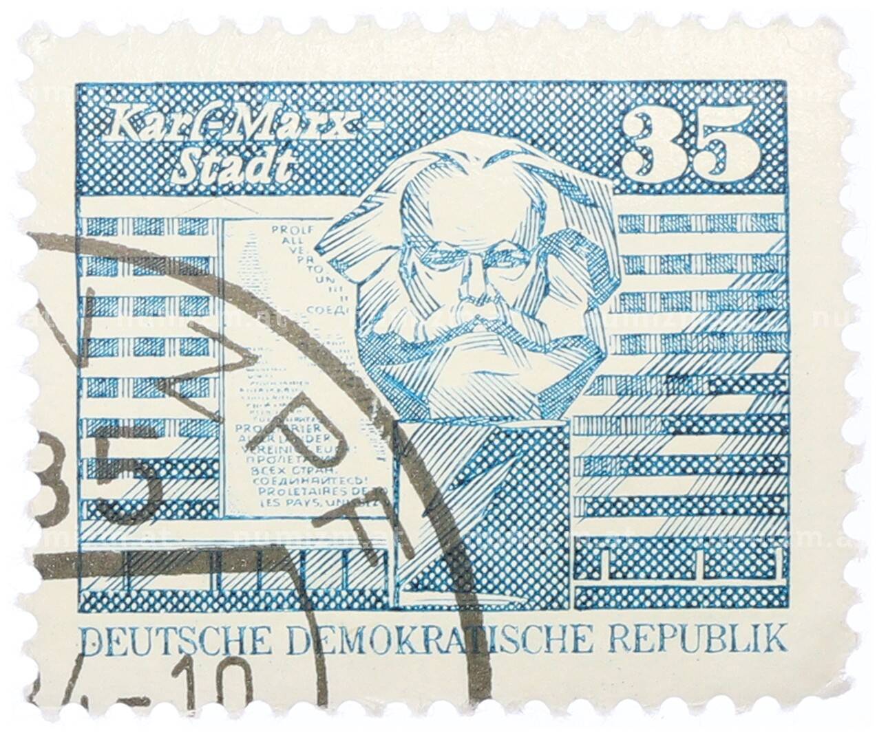 Почтовая марка 35 пфеннигов 1973 года Восточная Германия (ГДР) «Памятник Карлу Марксу» (Артикул: T11-34205): подробные характеристики, качественные фотографии в высоком разрешении, низкая цена.