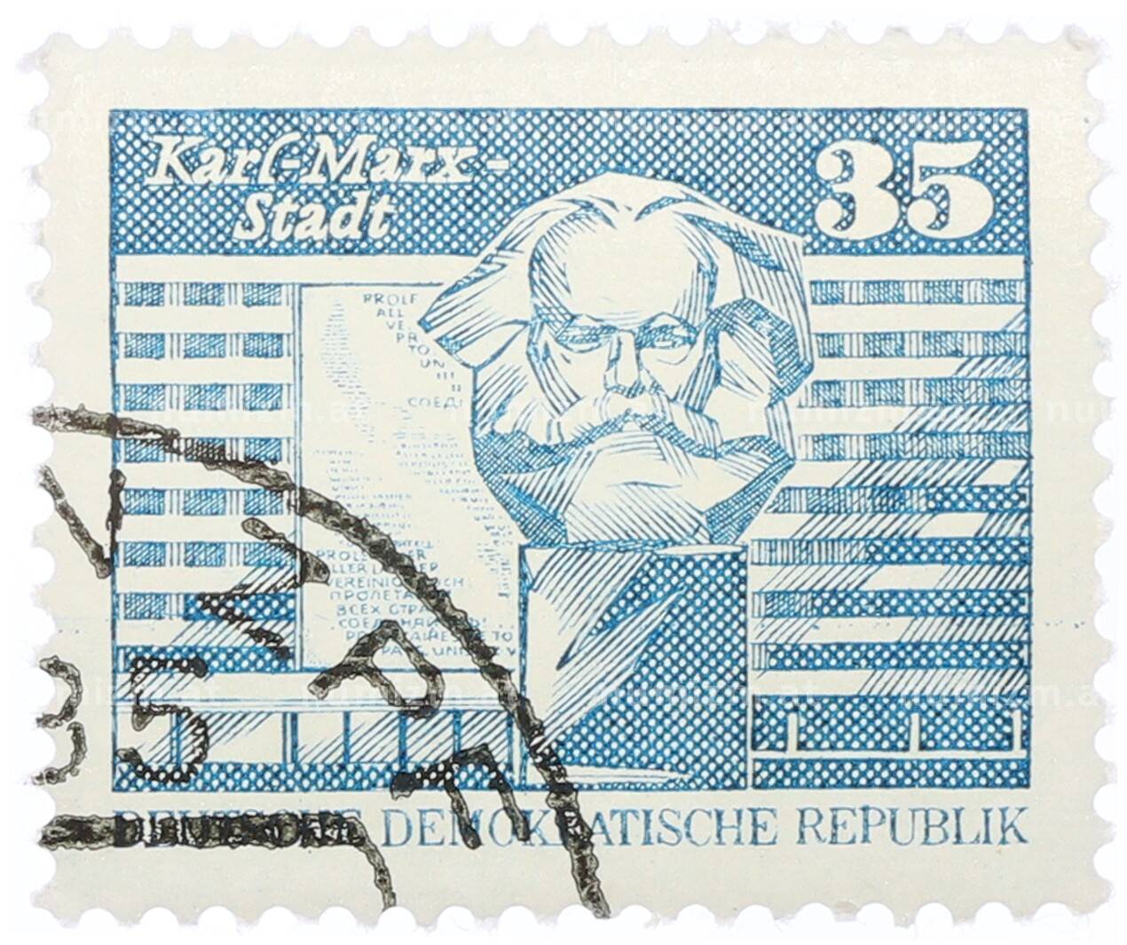 Почтовая марка 35 пфеннигов 1973 года Восточная Германия (ГДР) «Памятник Карлу Марксу» (Артикул: T11-34211): подробные характеристики, качественные фотографии в высоком разрешении, низкая цена.