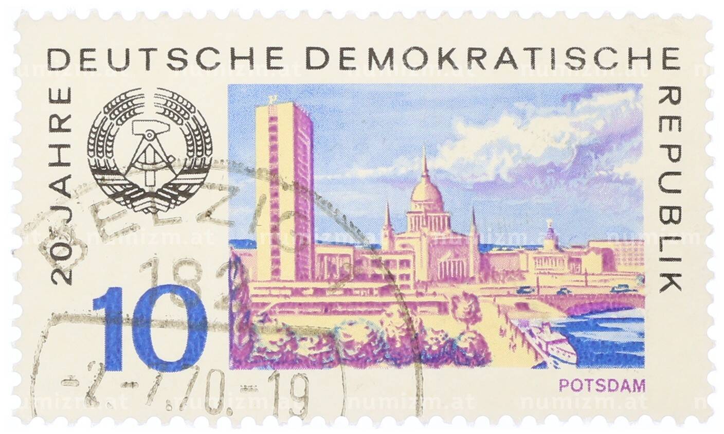 Интернет магазин «Нумизмат» предлагает приобрести Почтовая марка 10 пфеннигов 1969 года Восточная Германия (ГДР) «20 лет ГДР — Потсдам».