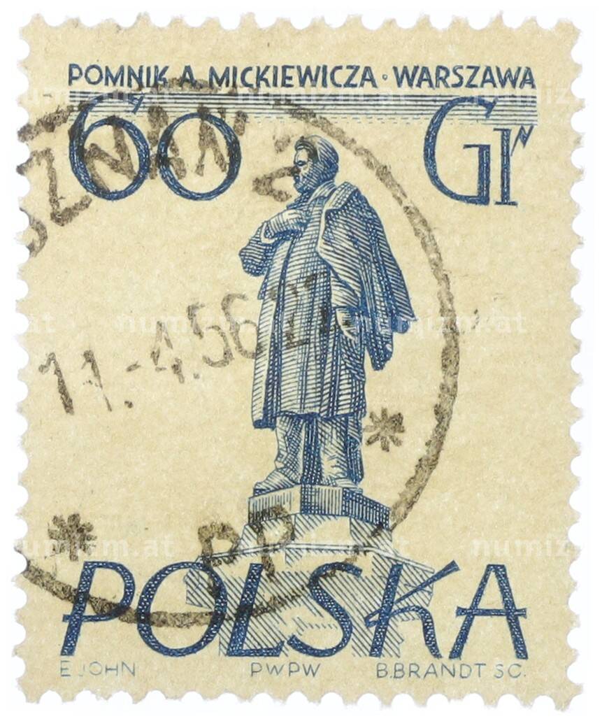 Купить Почтовая марка 60 грошей 1955 года Польша «Памятники Варшавы — Адам Мицкевич» по привлекательной цене можно в нашем интернет-магазине — Вам достаточно оформить заказ на сайте. Все монеты, представленные в каталоге, находятся в наличии на нашем складе.