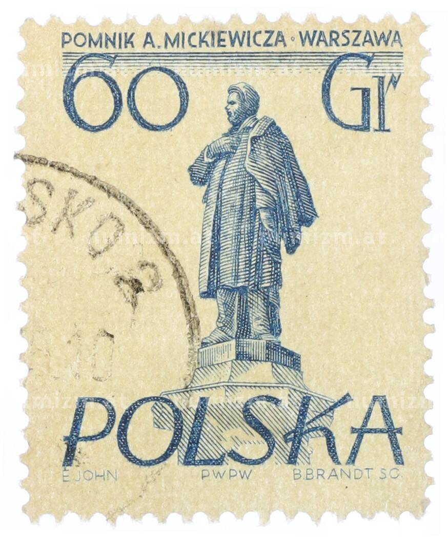 Почтовая марка 60 грошей 1955 года Польша «Памятники Варшавы — Адам Мицкевич» (Артикул: T11-34364): подробные характеристики, качественные фотографии в высоком разрешении, низкая цена.