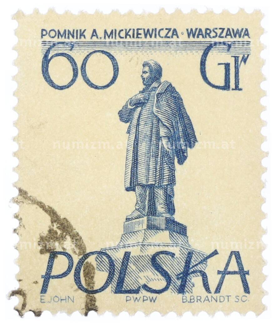 Купить Почтовая марка 60 грошей 1955 года Польша «Памятники Варшавы — Адам Мицкевич» по привлекательной цене можно в нашем интернет-магазине — Вам достаточно оформить заказ на сайте. Все монеты, представленные в каталоге, находятся в наличии на нашем складе.