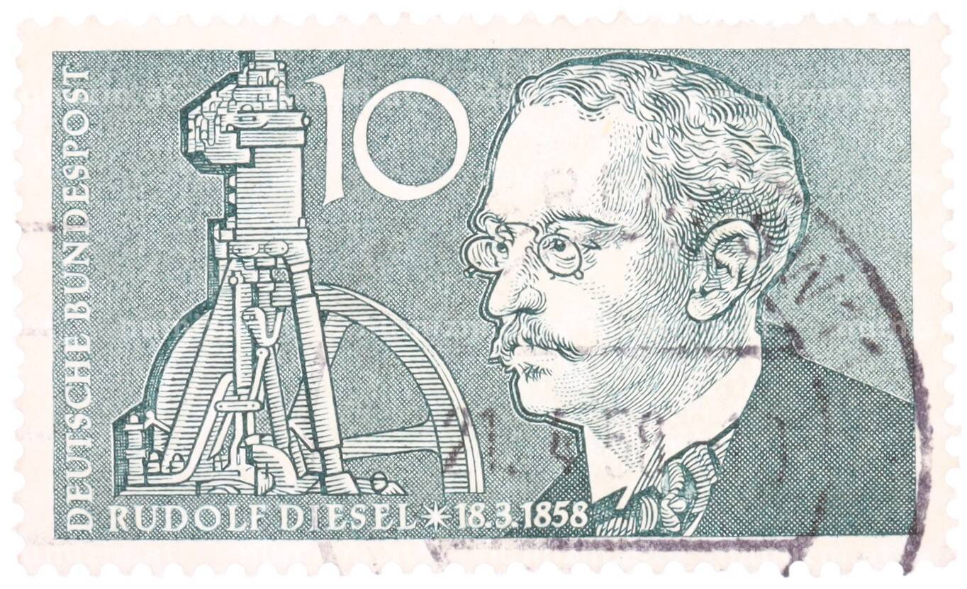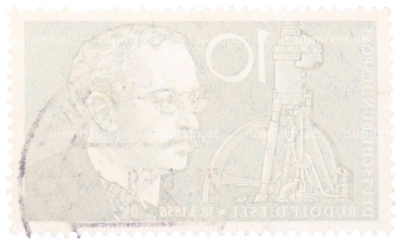 Почтовая марка 10 пфеннигов 1958 года Западная Германия (ФРГ) «Рудольф Дизель и изобретение мотора» (Артикул: T11-34419): подробные характеристики, качественные фотографии в высоком разрешении, низкая цена.