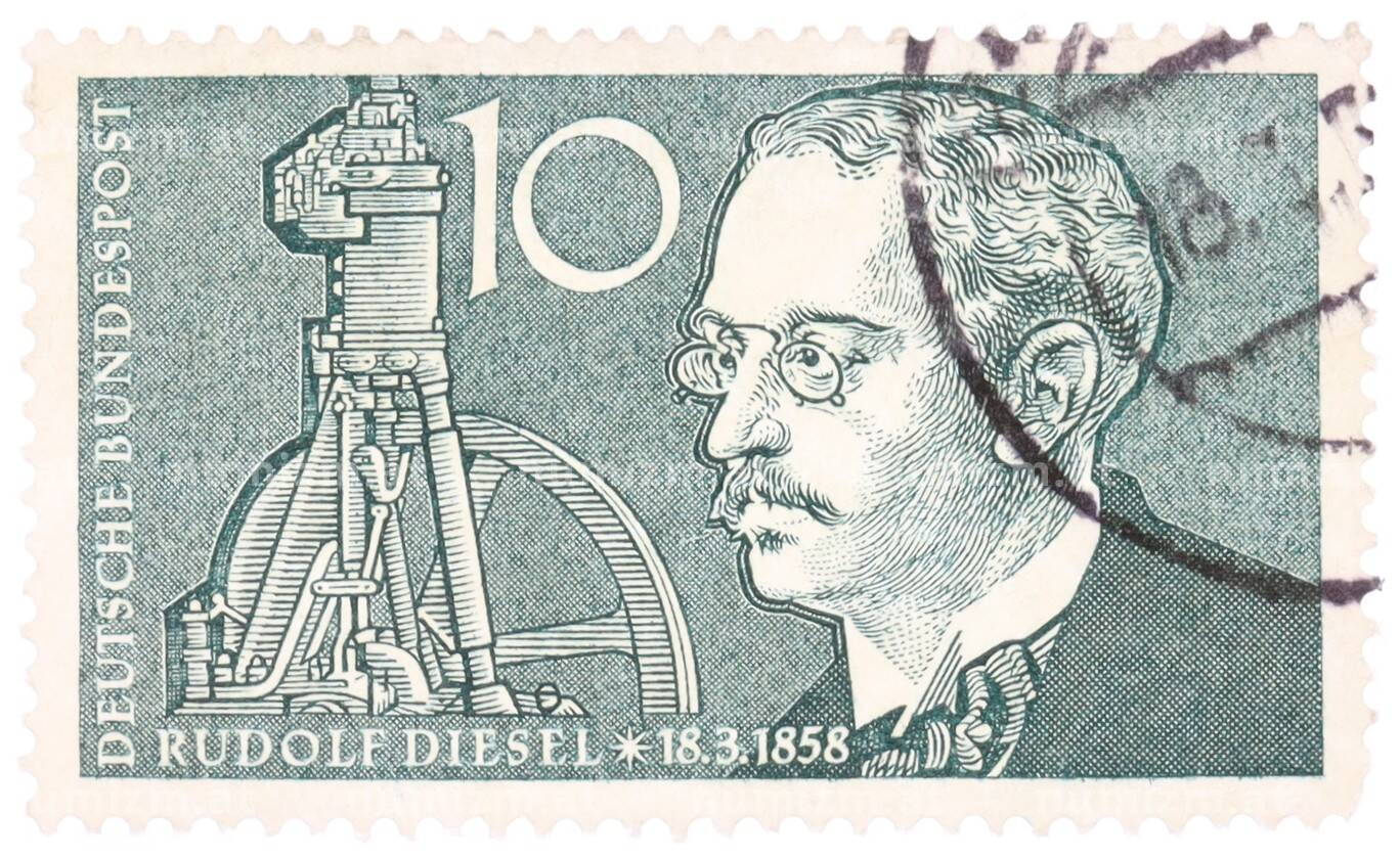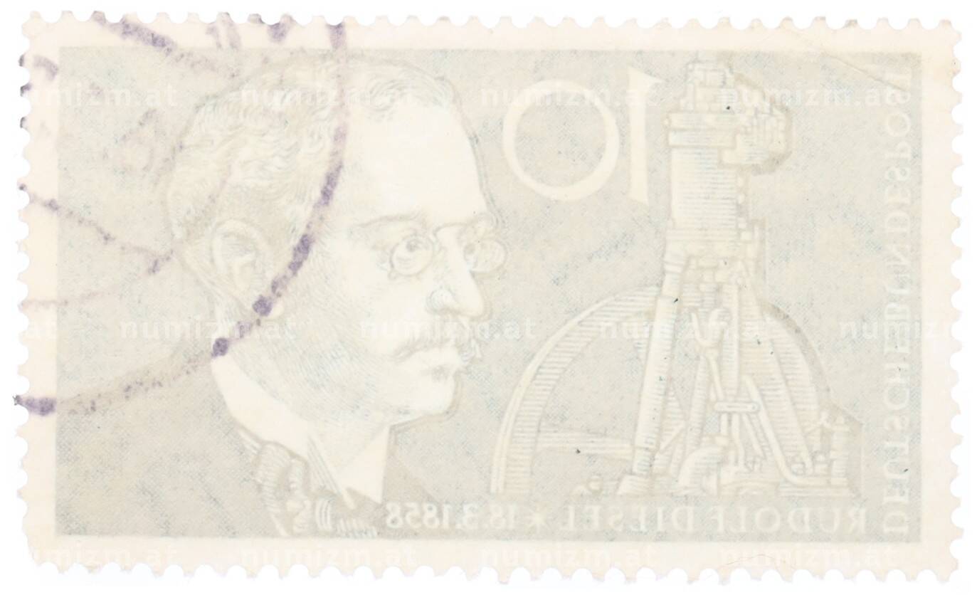 Почтовая марка 10 пфеннигов 1958 года Западная Германия (ФРГ) «Рудольф Дизель и изобретение мотора» (Артикул: T11-34423): подробные характеристики, качественные фотографии в высоком разрешении, низкая цена.