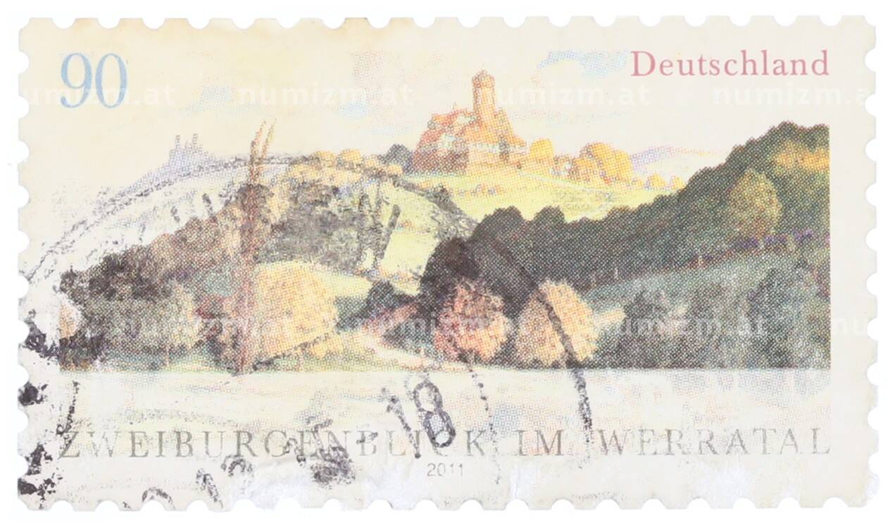 Почтовая марка 90 евроцентов 2011 года Германия «Замок Людвигштайн-Гессия и руины замка Ханштейн-Тюринга» (Артикул: T11-34832): подробные характеристики, качественные фотографии в высоком разрешении, низкая цена.