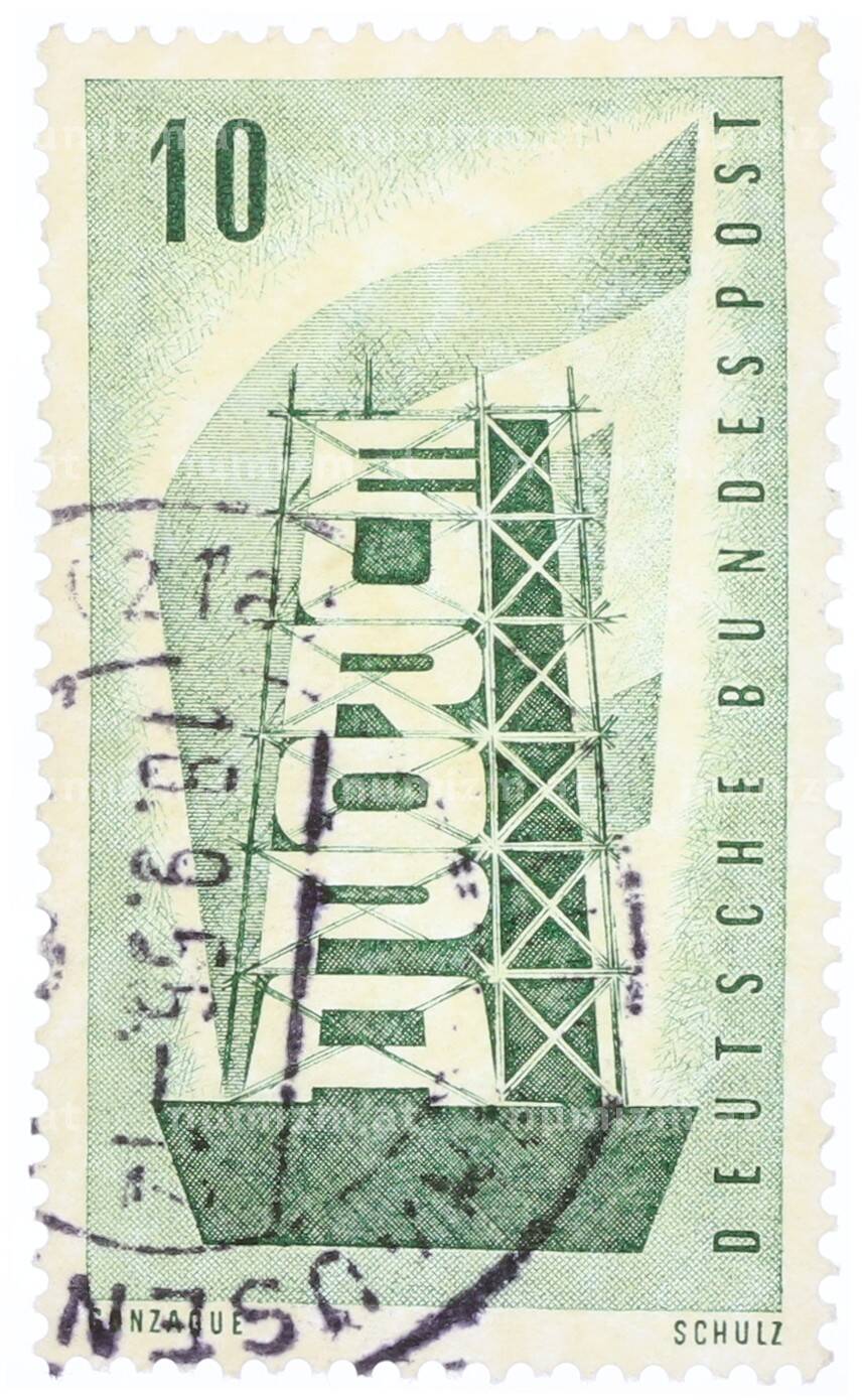 Почтовая марка 10 пфеннигов 1956 года Западная Германия (ФРГ) «Европейская конференция администраций почтовых служб и служб связи CEPT — Восстанавление Европы» [Артикул: T11-34837]
