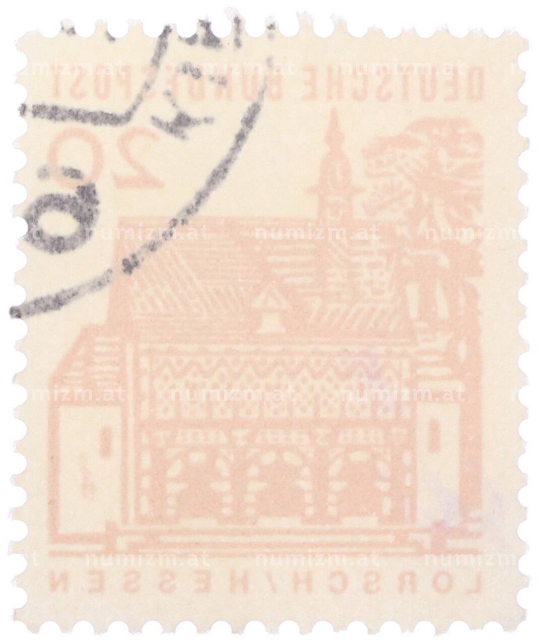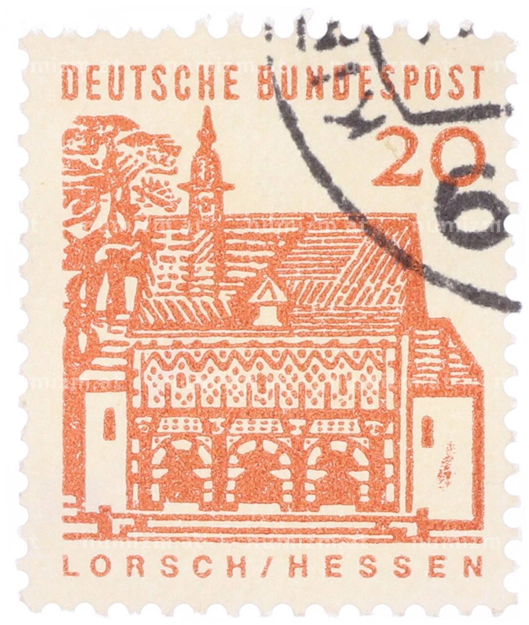 Интернет магазин «Нумизмат» предлагает приобрести Почтовая марка 20 пфеннигов 1965 года Западная Германия (ФРГ) «Немецкие постройки XII века — Ворота Лоршского монастыря в Гессене».