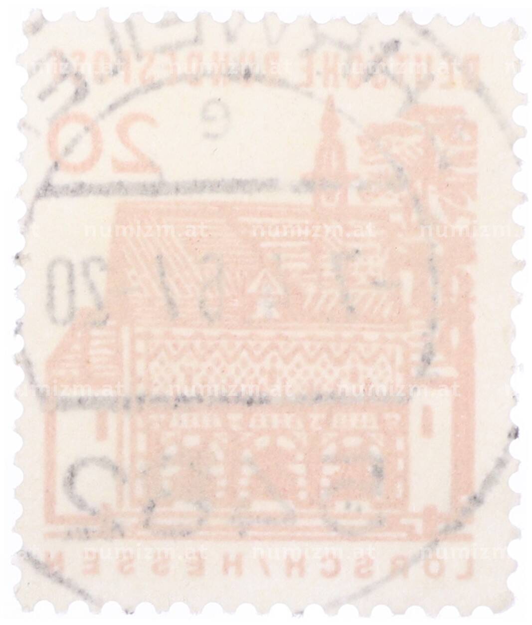 Интернет магазин «Нумизмат» предлагает приобрести Почтовая марка 20 пфеннигов 1965 года Западная Германия (ФРГ) «Немецкие постройки XII века — Ворота Лоршского монастыря в Гессене».