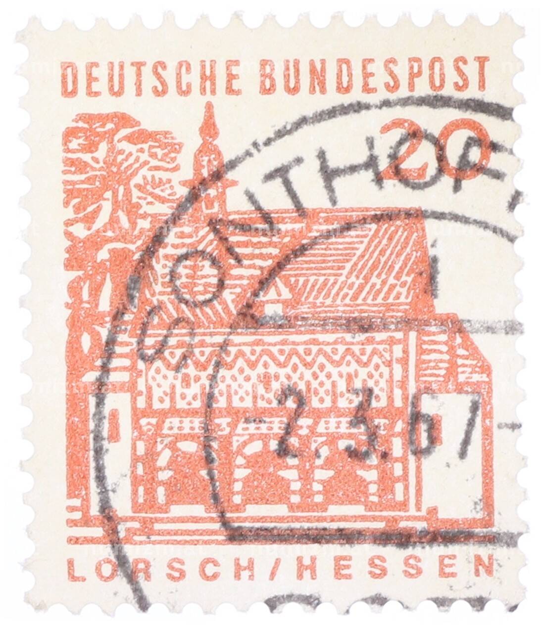 Почтовая марка 20 пфеннигов 1965 года Западная Германия (ФРГ) «Немецкие постройки XII века — Ворота Лоршского монастыря в Гессене» (Артикул: T11-35325): подробные характеристики, качественные фотографии в высоком разрешении, низкая цена.
