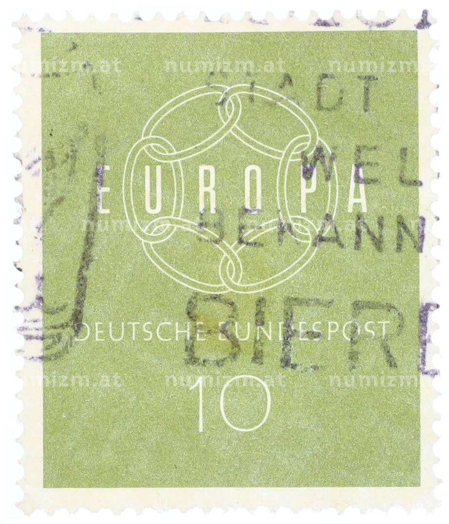 Интернет магазин «Нумизмат» предлагает приобрести Почтовая марка 10 пфеннигов 1959 года Западная Германия (ФРГ) «Европейская конференция администраций почтовых служб и служб связи CEPT — Цепь».