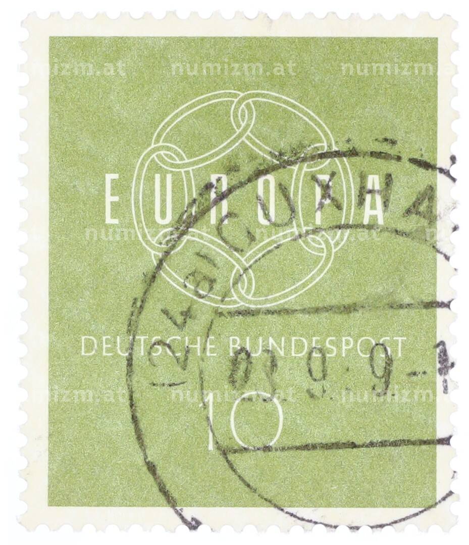 Почтовая марка 10 пфеннигов 1959 года Западная Германия (ФРГ) «Европейская конференция администраций почтовых служб и служб связи CEPT — Цепь» (Артикул: T11-35335): подробные характеристики, качественные фотографии в высоком разрешении, низкая цена.