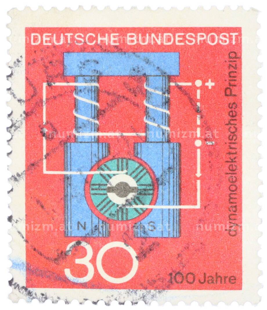 Почтовая марка 30 пфеннигов 1966 года Западная Германия (ФРГ) «Научные юбилеи — 100 лет динамоэлектрическому принципу» (Артикул: T11-35347): подробные характеристики, качественные фотографии в высоком разрешении, низкая цена.