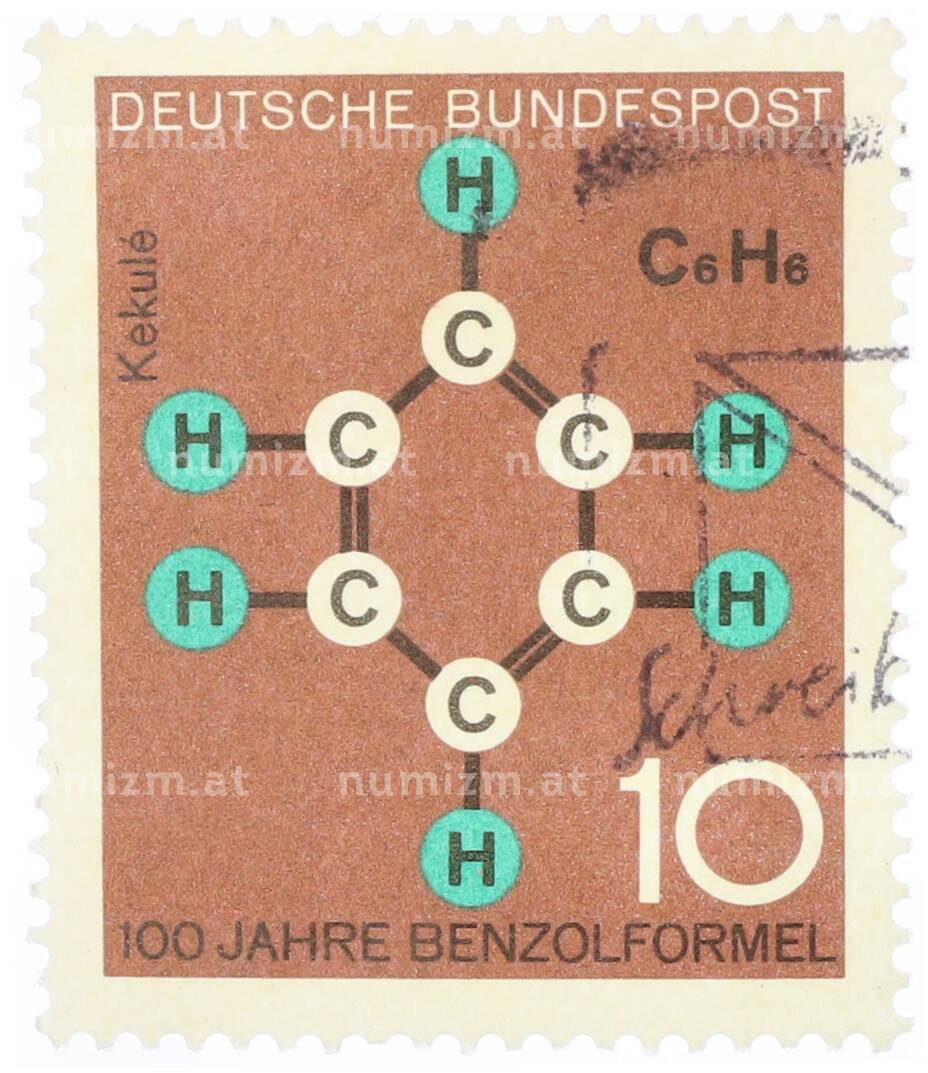 Почтовая марка 20 пфеннигов 1964 года Западная Германия (ФРГ) «Научные юбилеи — 100 лет формуле бензола» (Артикул: T11-35356): подробные характеристики, качественные фотографии в высоком разрешении, низкая цена.