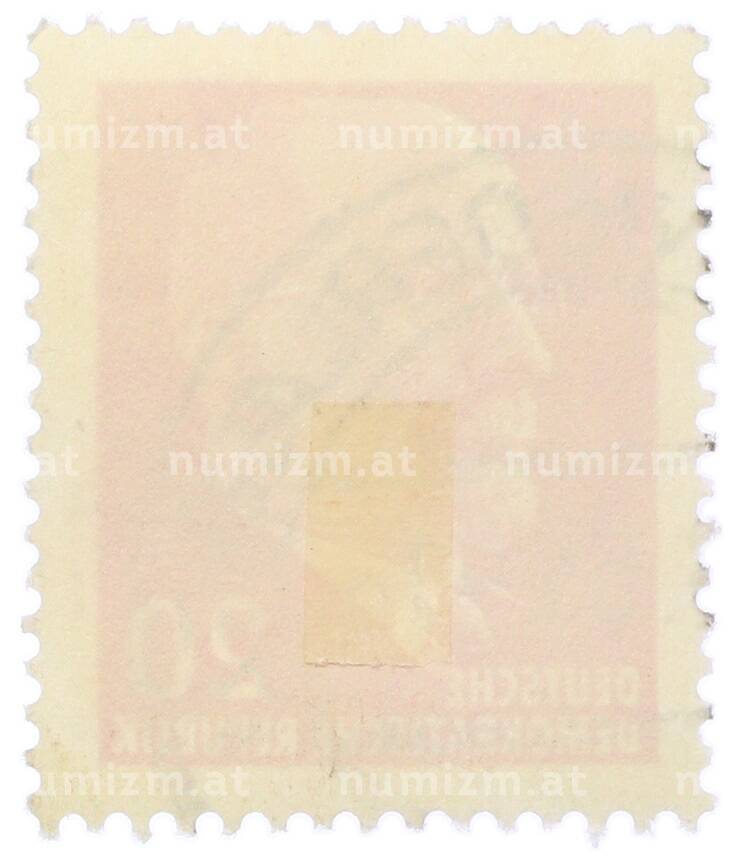 20.01.2025Интернет магазин «Нумизмат» предлагает приобрести Почтовая марка 20 пфеннигов 1961 года Восточная Германия (ГДР) «Вальтер Эрнст Пауль Ульбрихт».