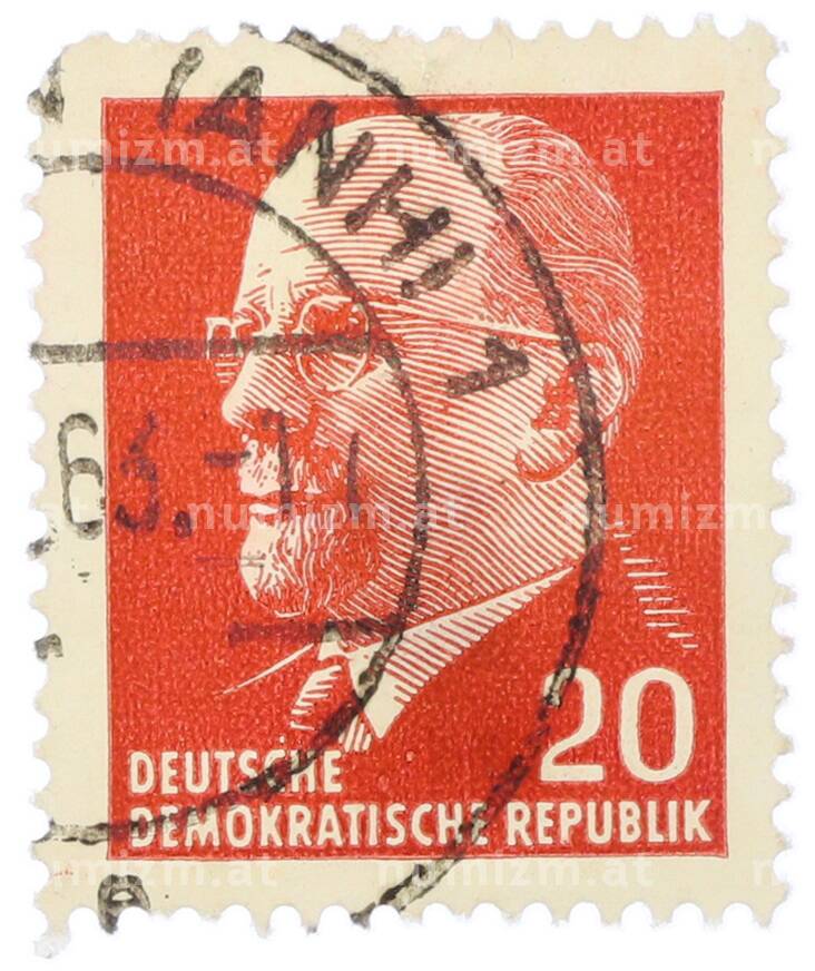 Интернет магазин «Нумизмат» предлагает приобрести Почтовая марка 20 пфеннигов 1961 года Восточная Германия (ГДР) «Вальтер Эрнст Пауль Ульбрихт».