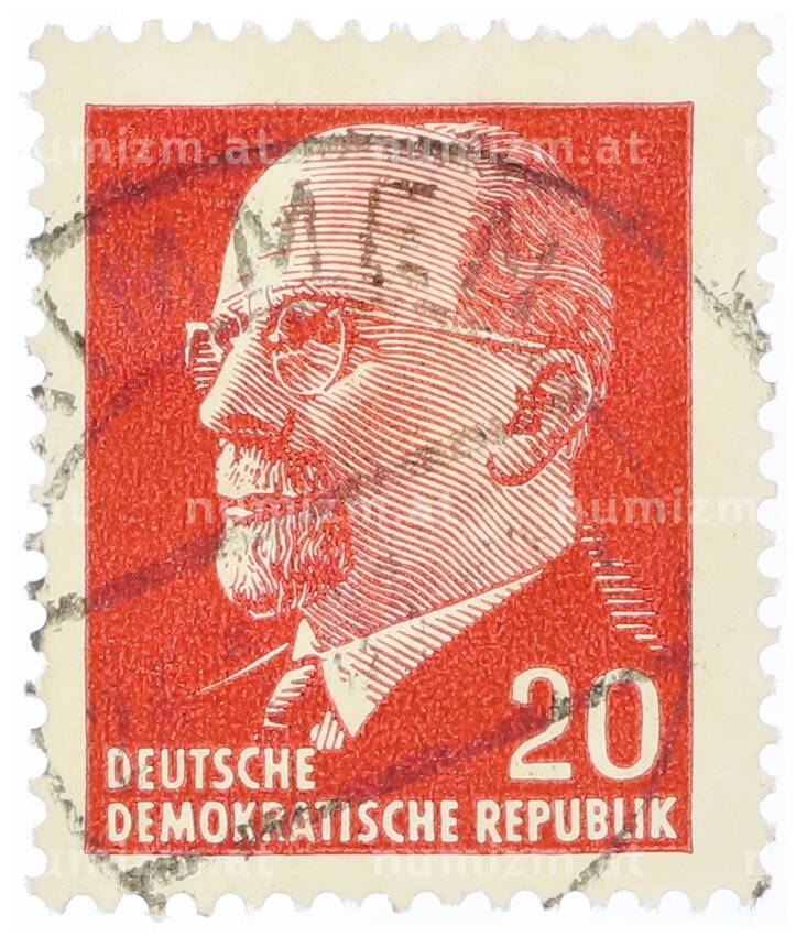 Интернет магазин «Нумизмат» предлагает приобрести Почтовая марка 20 пфеннигов 1961 года Восточная Германия (ГДР) «Вальтер Эрнст Пауль Ульбрихт».
