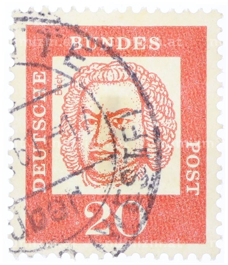 Почтовая марка 20 пфеннигов 1961 года Западная Германия (ФРГ) «Выдающиеся немцы — Иоганн Себастьян Бах» (Артикул: T11-35462): подробные характеристики, качественные фотографии в высоком разрешении, низкая цена.