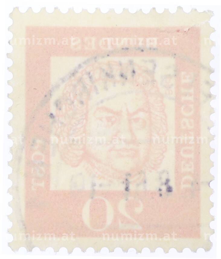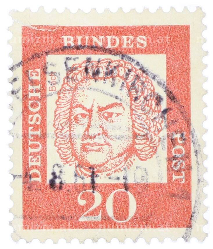 Почтовая марка 20 пфеннигов 1961 года Западная Германия (ФРГ) «Выдающиеся немцы — Иоганн Себастьян Бах» (Артикул: T11-35463): подробные характеристики, качественные фотографии в высоком разрешении, низкая цена.