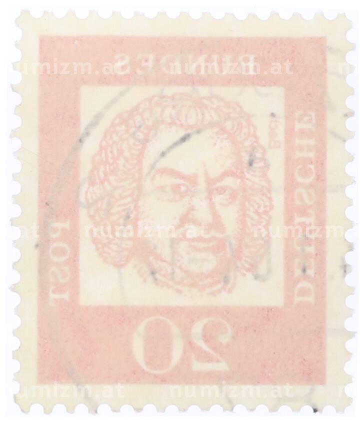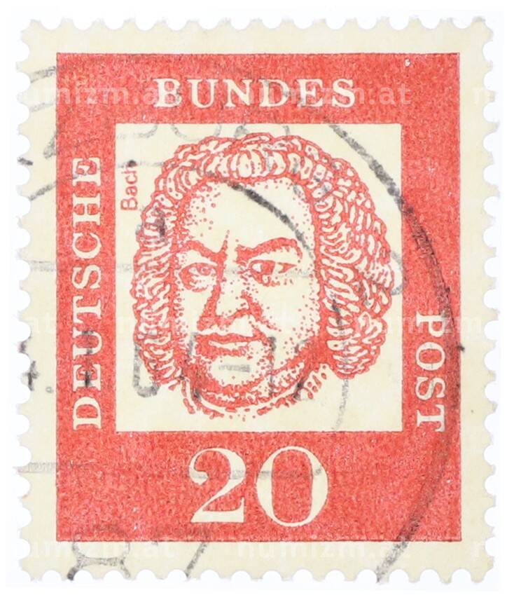 Почтовая марка 20 пфеннигов 1961 года Западная Германия (ФРГ) «Выдающиеся немцы — Иоганн Себастьян Бах» (Артикул: T11-35464): подробные характеристики, качественные фотографии в высоком разрешении, низкая цена.
